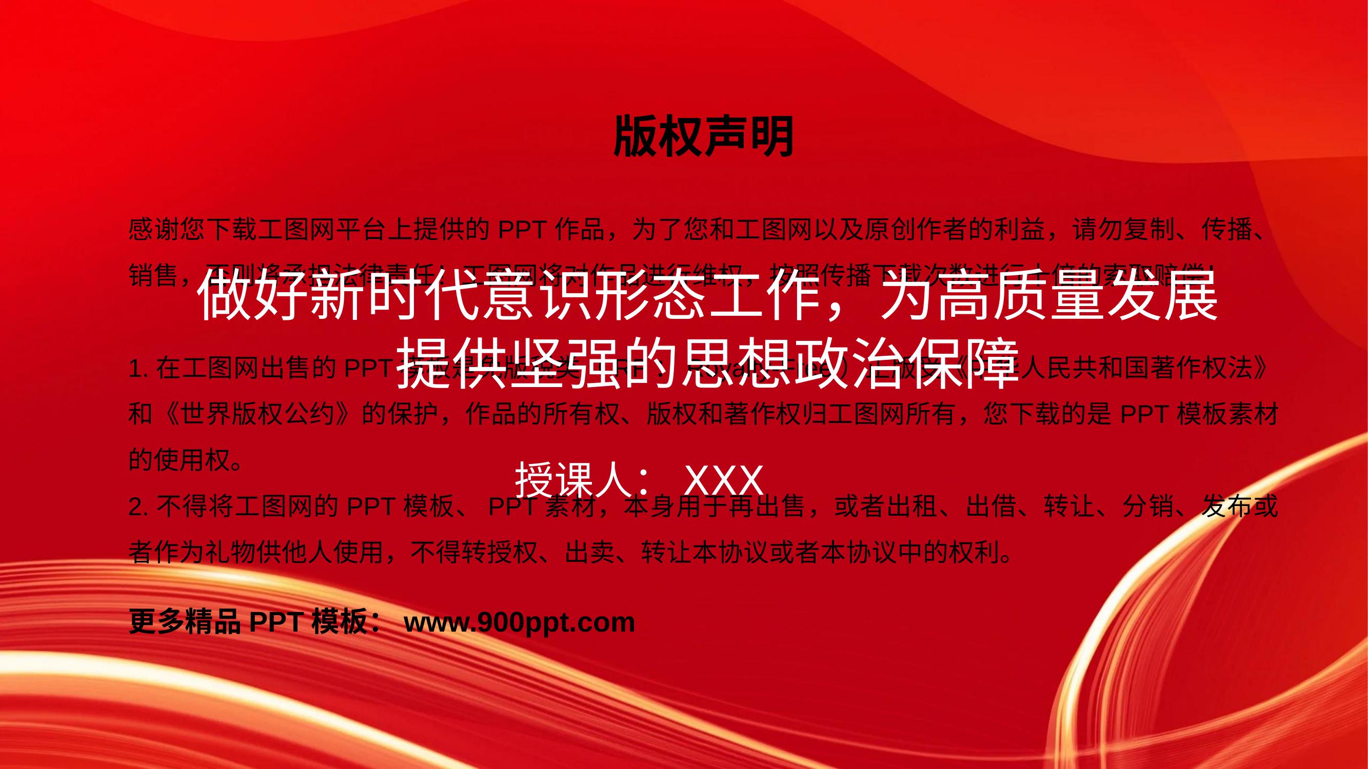 党课PPT:做好新时代意识形态工作,为高质量发展提供坚强的思想政治保障