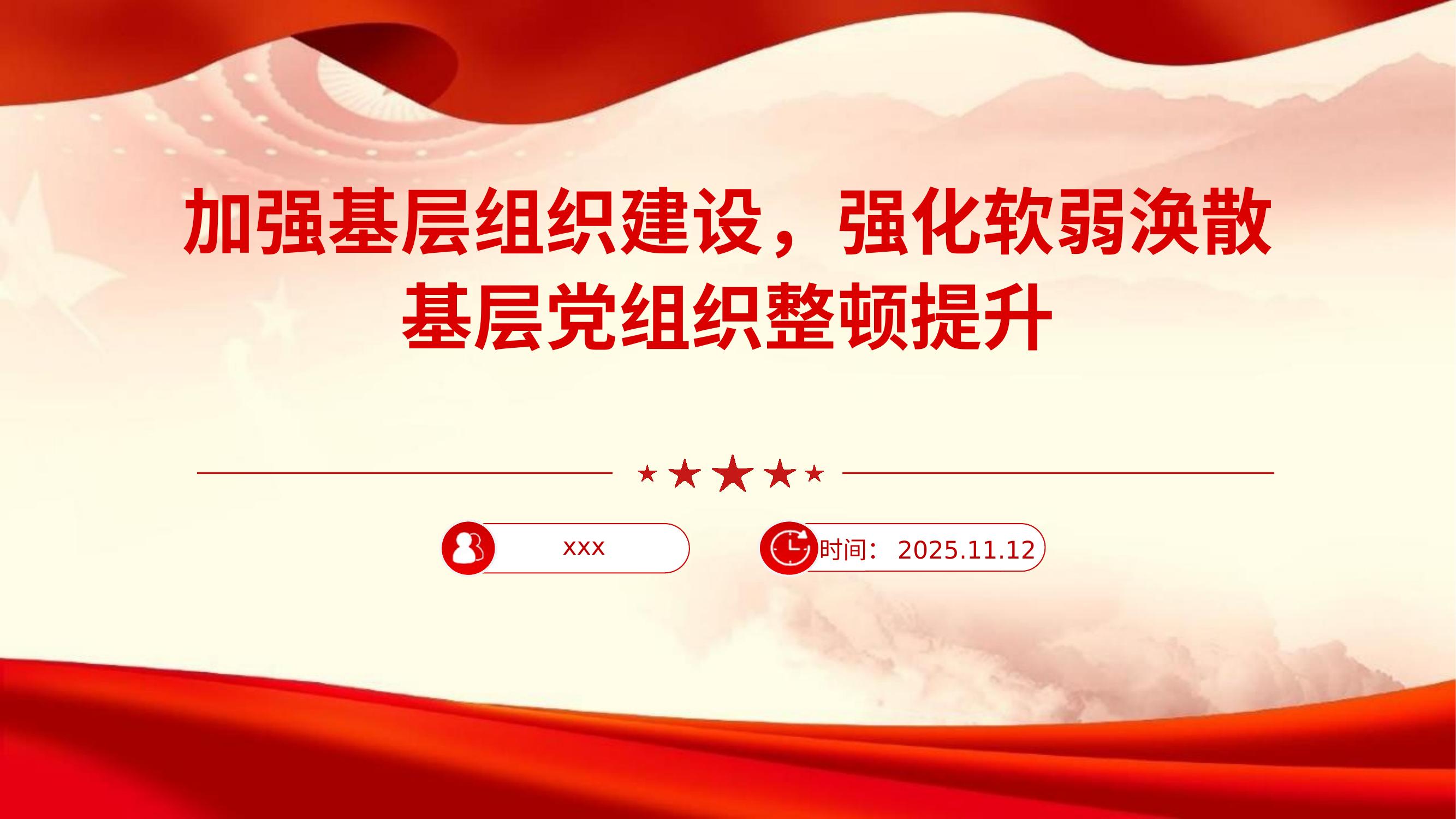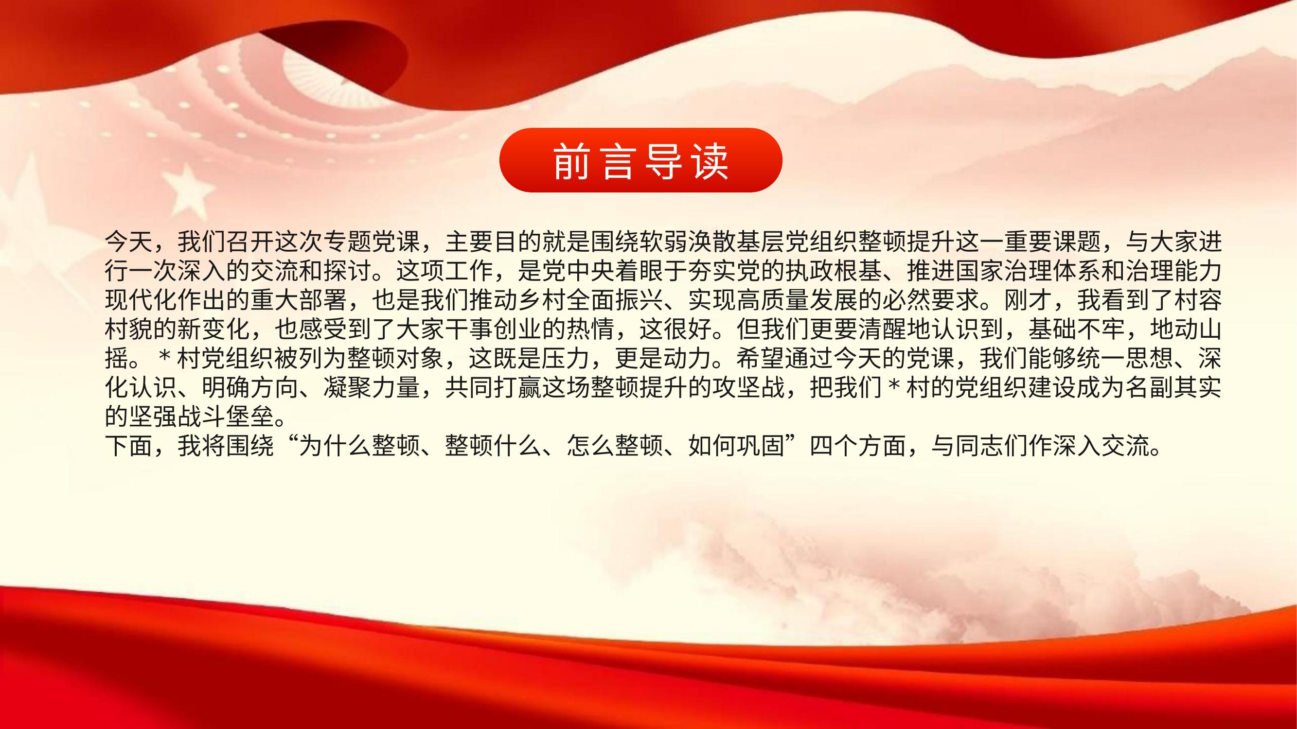 党课PPT:加强基层组织建设,强化软弱涣散基层党组织整顿提升