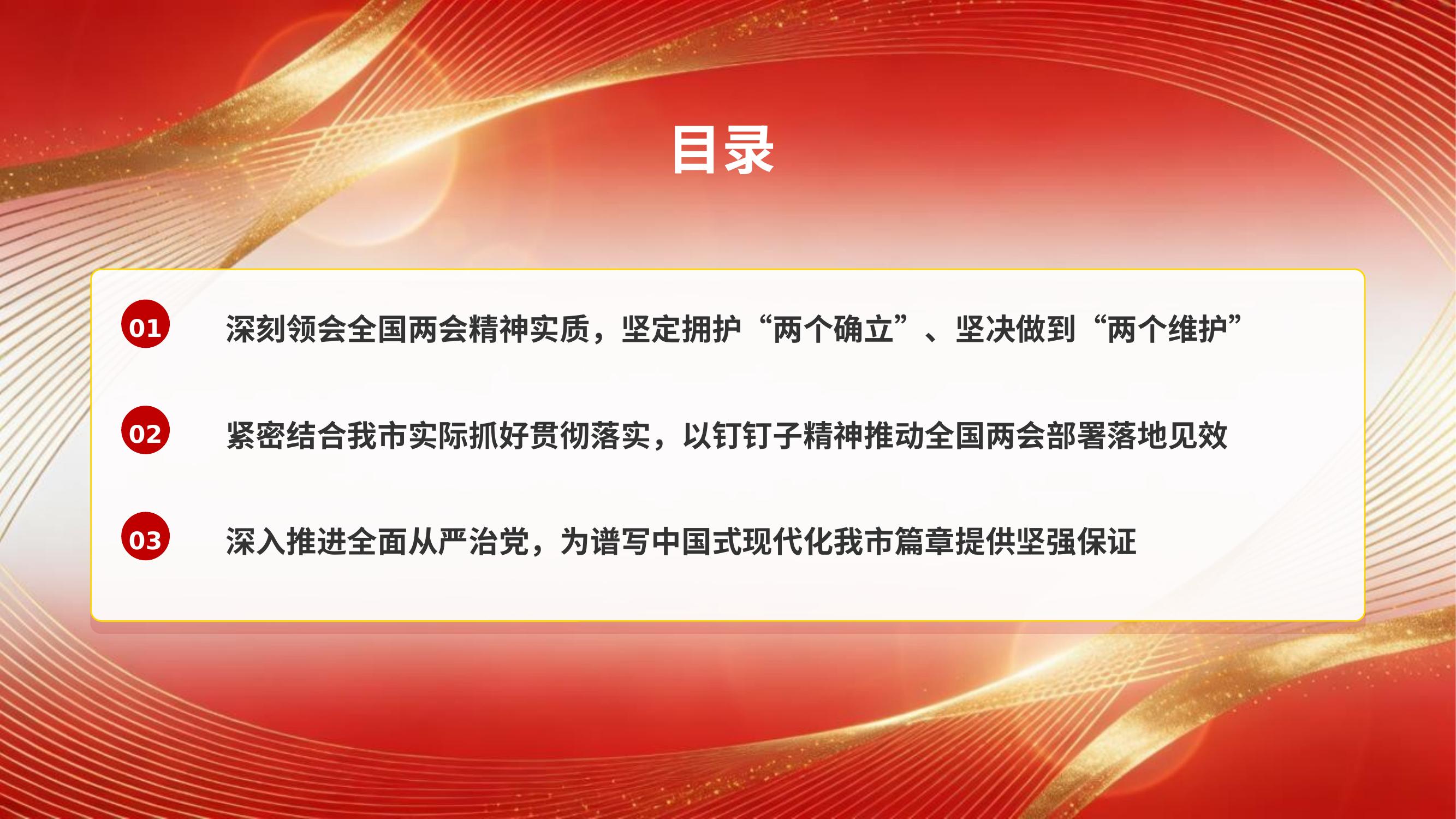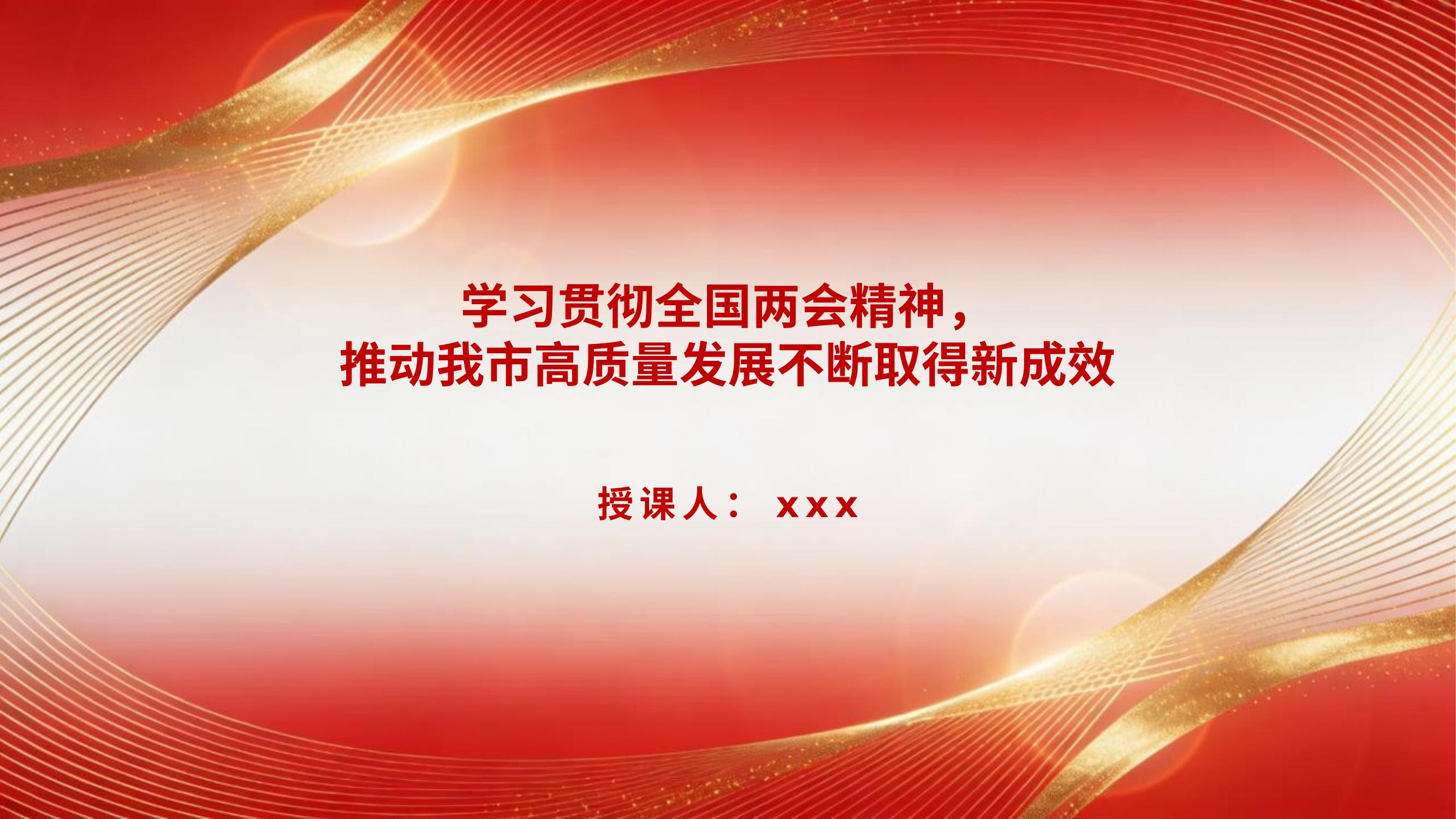 党课PPT:学习贯彻全国两会精神,推动我市高质量发展不断取得新成效