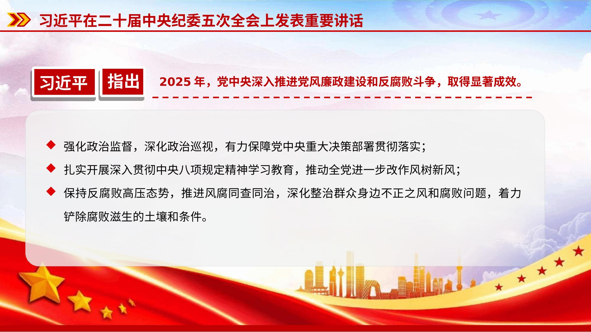 党课PPT:学习贯彻二十届中央纪委五次全会精神,推进全面从严治党各项任务落实落细